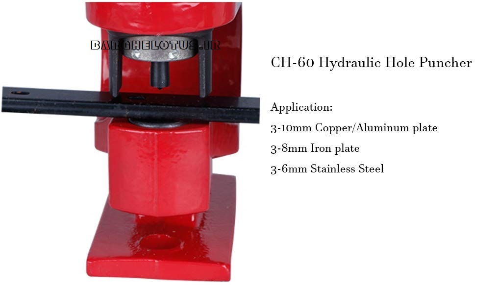 دستگاه پانچ هیدرولیک CH-60 معمولاً برای پانچ شینههای مسی و آلومینیومی طراحی شده است. این دستگاه قادر است شینههای مسی با حداکثر ضخامت 10 میلیمتر را پانچ کند، مشروط بر اینکه عرض شینه تا 150 میلیمتر باشد.